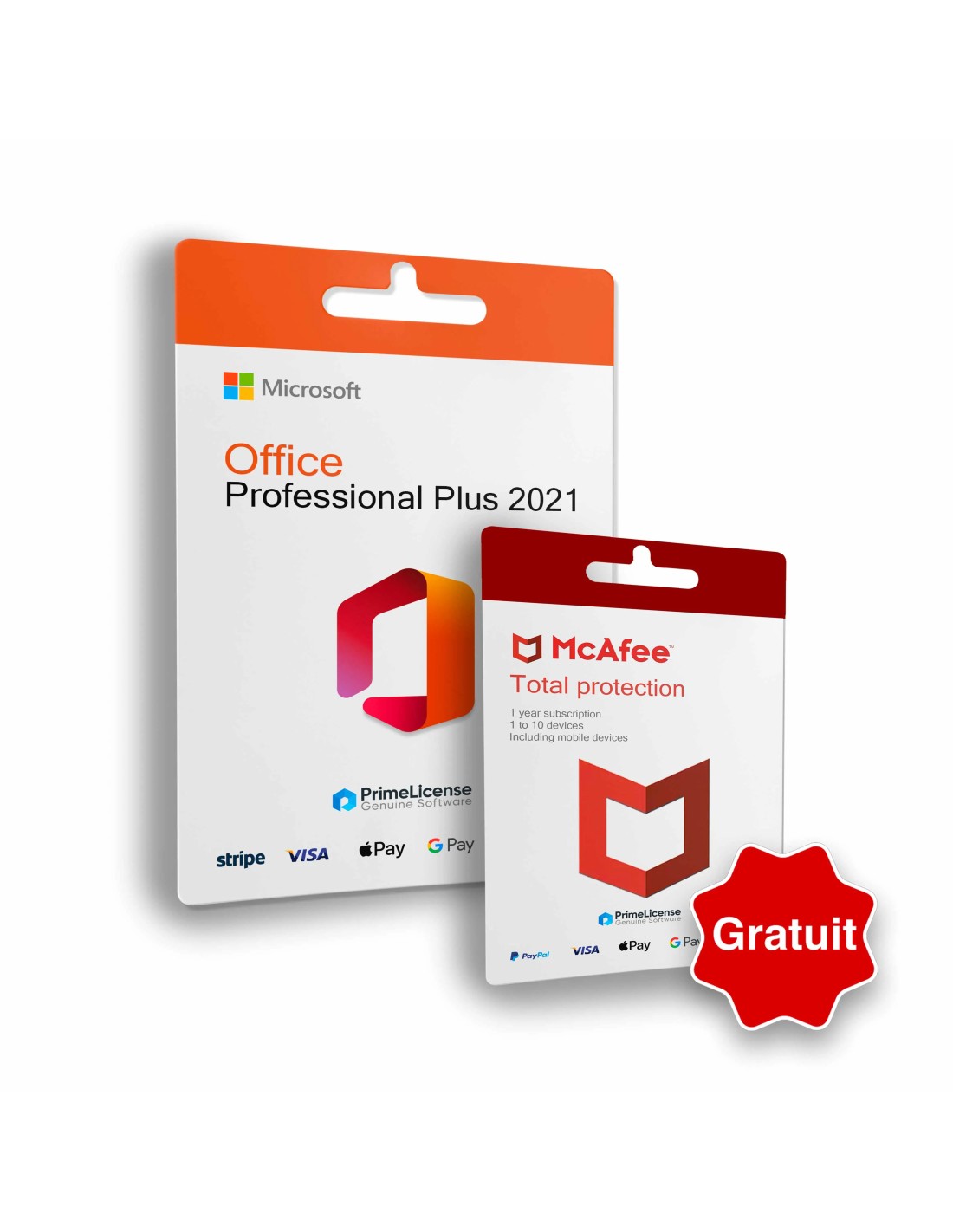 Contenu de l'offre groupée Office 2021 Professional Plus + McAfee Total Protection 2023